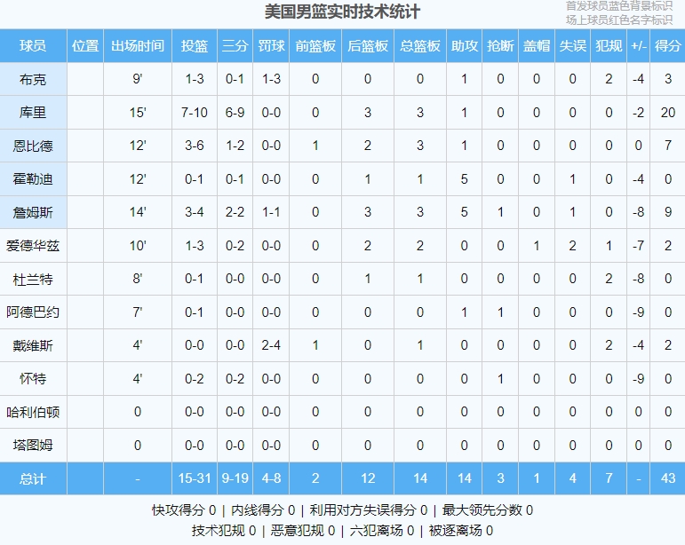 库里半场20分!美国男篮落后塞尔维亚11分!