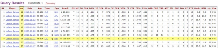 据统计,这是詹姆斯整个NBA生涯(1443场比赛)出战时长第九少的比赛。