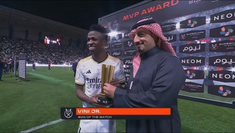 此役维尼修斯完美发挥半场即上演帽子戏法,赛后他也当选全场最佳球员。
