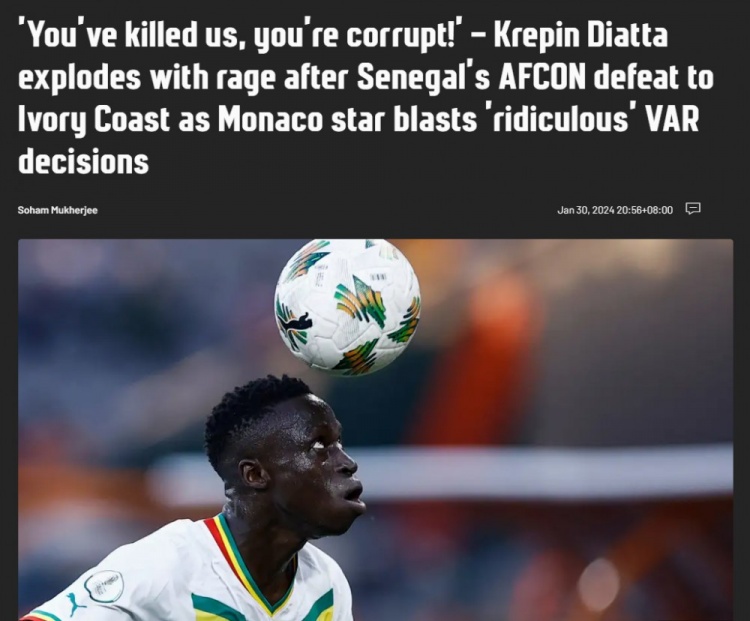 迪亚塔说:“你们简直谋杀了我们,这是腐败!你们就让非洲杯这样踢下去吧!你去找VAR抗议,然后就得到了一个点球。而我们的球员带球40米进入禁区后被放倒了,VAR却视而不见。对不起,我很抱歉,但这真的太荒谬了,你们扼杀了我们的比赛。”