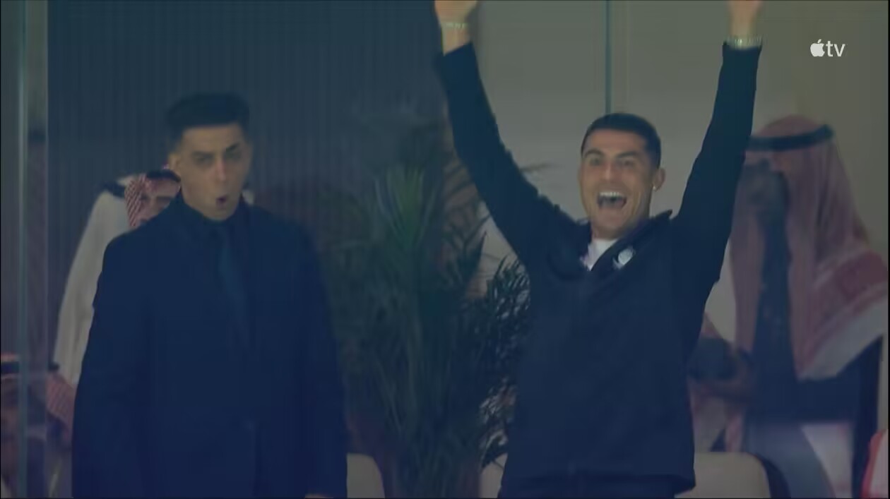 神仙球!拉波尔特后场任意球吊射破门,C罗起身振臂高呼
