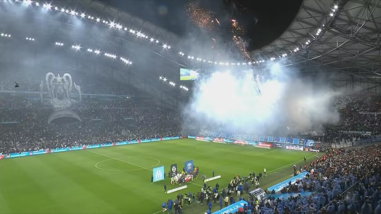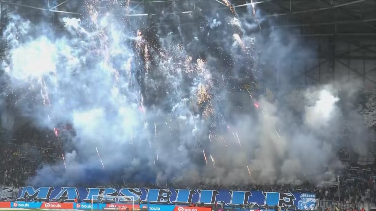 ??气氛火爆!马赛vs巴黎现场球迷放烟花,观众席一片烟雾缭绕