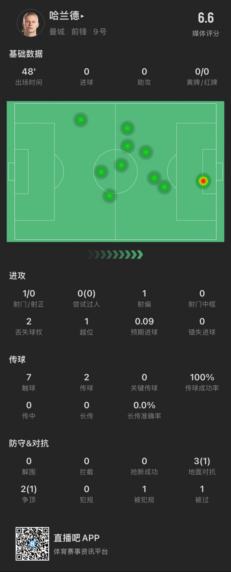 4月1日讯 英超第30轮焦点战,曼城主场对阵阿森纳。半场战罢,两队均无建树,暂时0-0平。首发出战的哈兰德在上半场存在感不强,暂时获评6.6分,和阿克并列对队内最低。