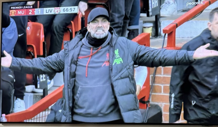 随后梅努破门,摩根晒出克洛普一脸懵的图,简单直接地写道:BOOOOOOOOOOM!!! ??