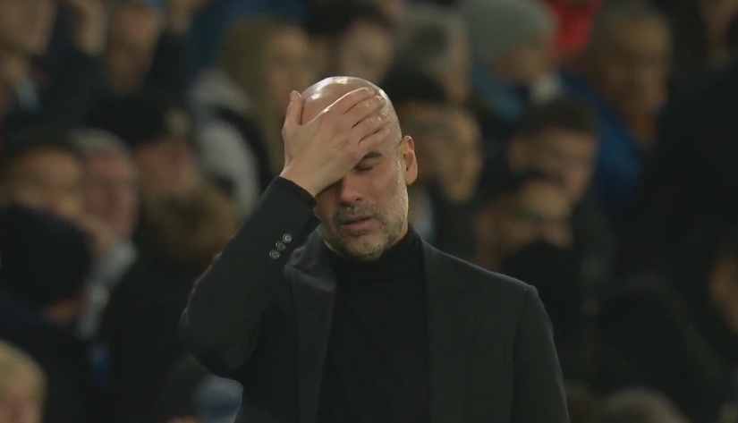 德布劳内门前良机打高,瓜迪奥拉无奈摸头