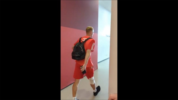 4月28日讯 据记者Patrick Strasser报道,德里赫特赛后缠着绷带离开球场。