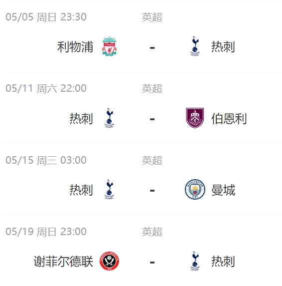 热刺后续赛程↓