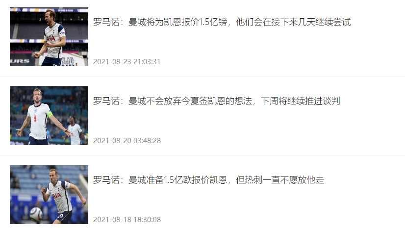 2021年夏窗,凯恩是曼城的头号引援目标,而凯恩本人也寻求转会到曼城,当时甚至疑似罢训推动转会。