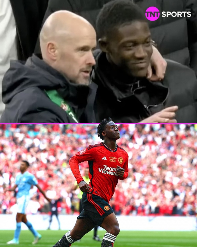 5月26日讯 足总杯决赛,曼联在温布利球场2-1击败曼城夺冠,19岁梅努破门。赛后,滕哈赫接受采访谈及本场比赛进球的梅努。