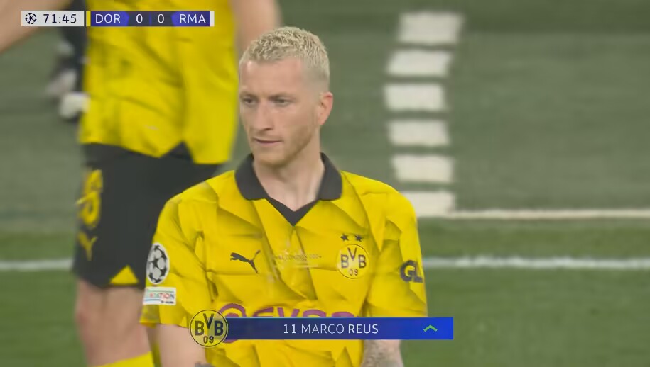 比赛第72分钟,多特做出换人调整,阿德耶米被换下,罗伊斯替补登场!
