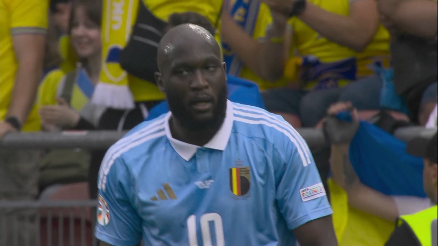 第7分钟,德布劳内直塞,卢卡库用身体卡位拼出准单刀,但他左脚打门绵软无力,被门将扑住。随后他点了个赞。