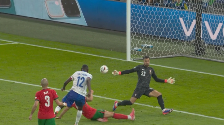 这一球梦回世界杯决赛!穆阿尼外脚背弹射被迪亚斯挡出!