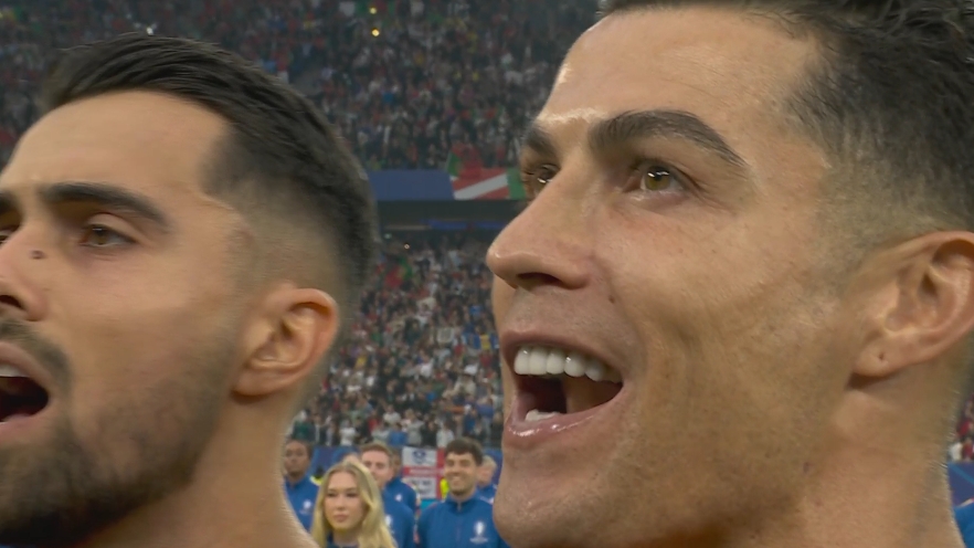 精神不错!C罗赛前唱国歌笑容满面