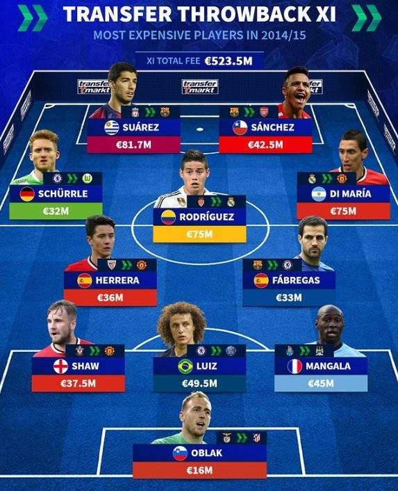 德转回顾2014转会最贵阵:总转会费5.235亿欧元
